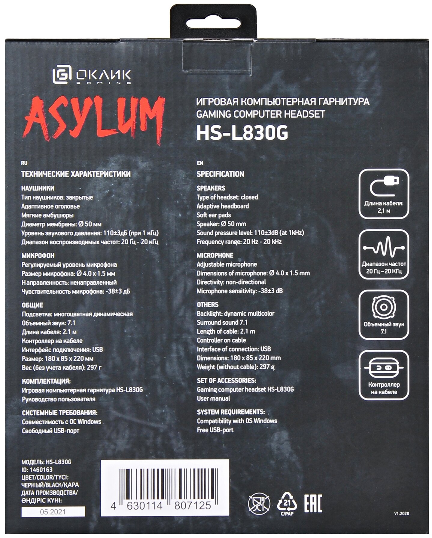 Additional Information: Multi-color dynamic backlight; 7.1 virtual surround sound; control of sound and lighting on the wire; adaptive headband