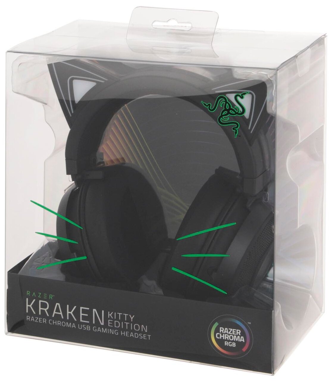 Razer Chroma-ready design; stream-responsive backlight; THX Spatial Audio technology; ear pads with cooling gel; cup inner diameter: 65 x 44 mm