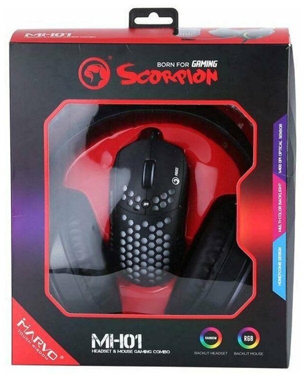 MARVO MH01BK set: wired gaming mouse + gaming headphones with microphone black