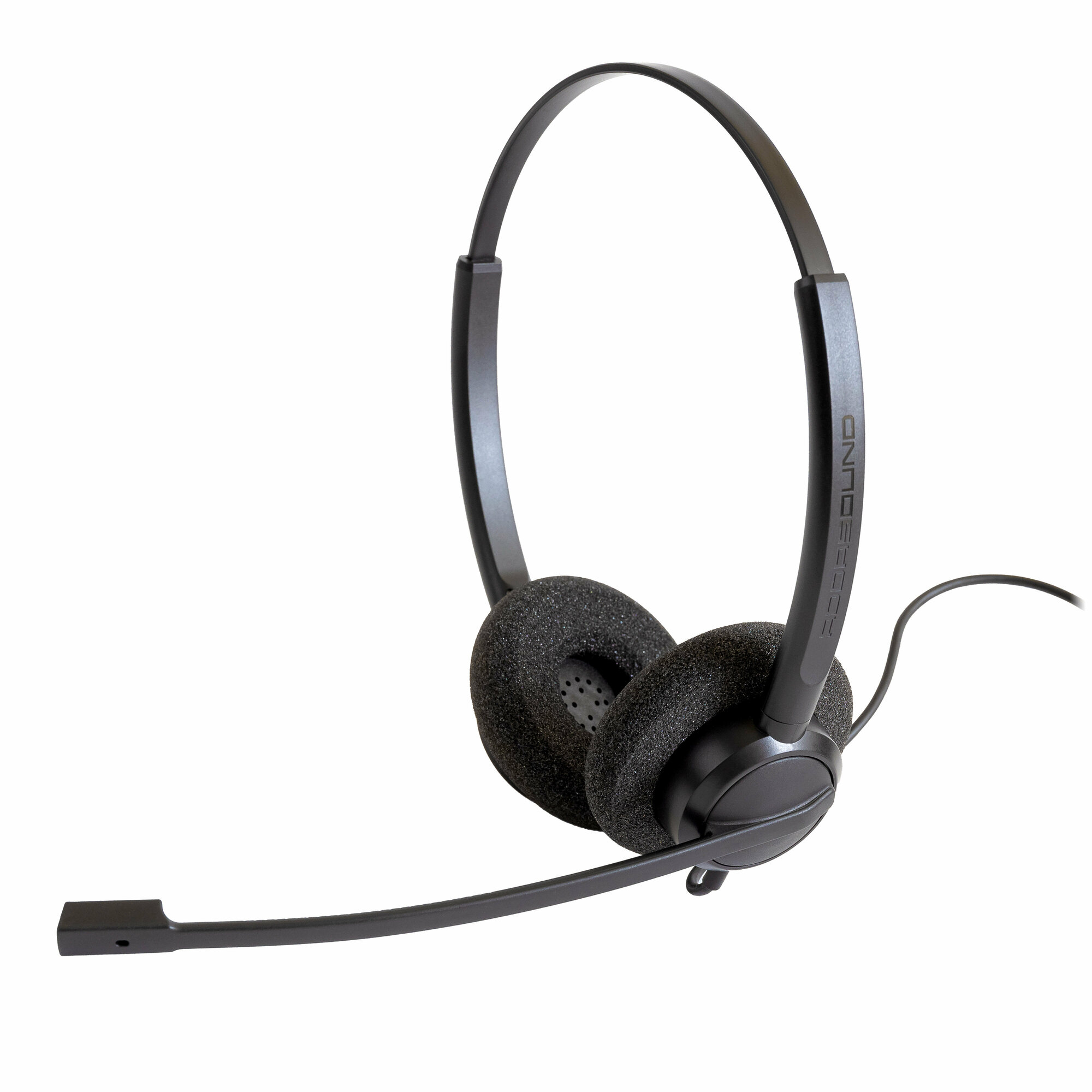 Headset with USB-A output, spare foam ear pads, instructions