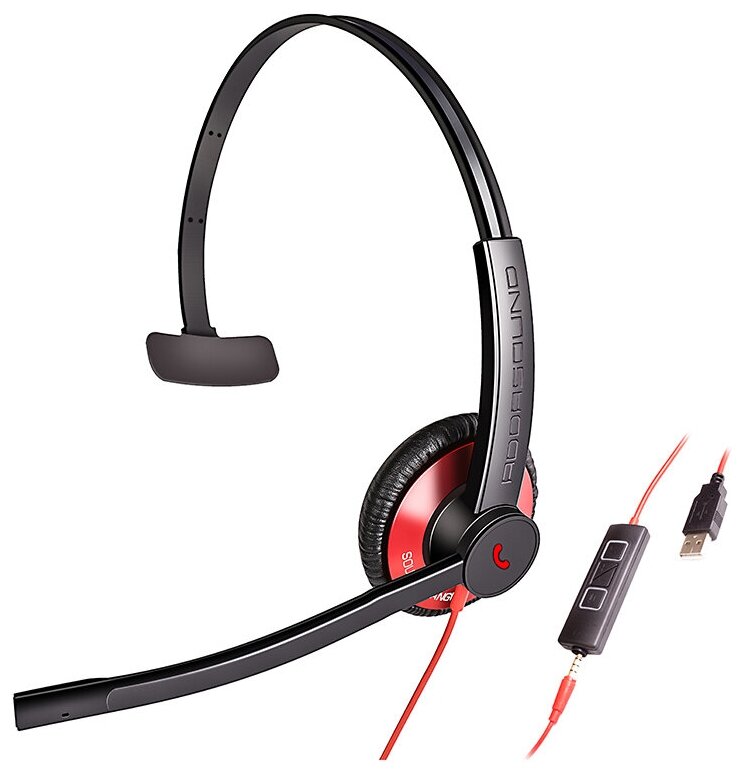 Professional headphones for computer with microphone Addasound Epic 501, USB, 3.5 mm jack, noise reduction, red, ADD-EPIC-501-R