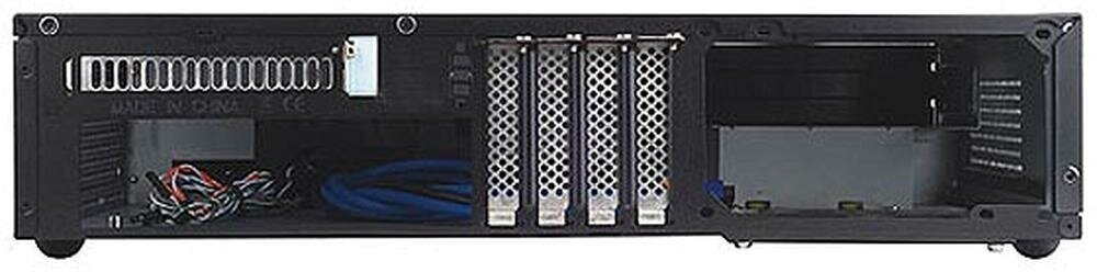 Space for 4x 80 mm fans on the right; Possibility of installation instead of a 5.25" drive, one 3.5" drive or two 2.5"