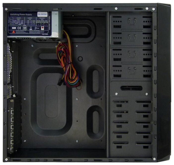 Size: Midi-Tower, motherboard form factor: ATX, Micro-ATX, power supply, power supply power: 401 - 600 W, number of internal compartments 3.5: 6, width: 185 mm, height: 418 mm, depth : 440 mm, body color: black