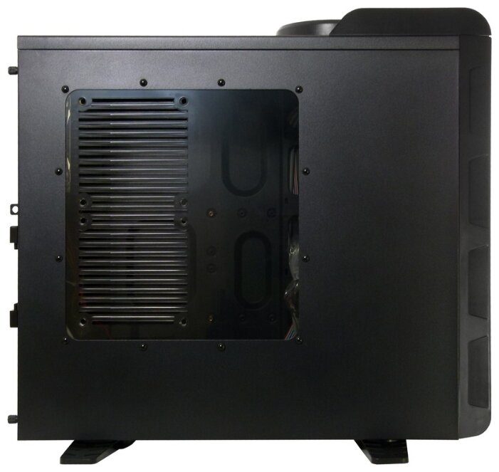 Screwless mounting of 5.25 devices; space for two 120 mm fans on the side