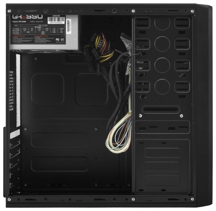Description: Size: Midi-Tower, motherboard form factor: ATX, power supply, power supply power: 401 - 600 W, number of internal bays 3.5: 2, width: 175 mm, height: 410 mm, depth: 410 mm, body color: black