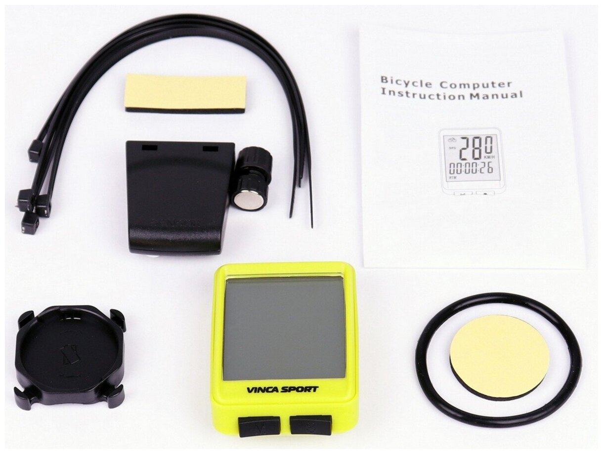 Type: cycling computer, cycling computer type: wireless, mount: handlebar, functions: training time, odometer, stopwatch, average speed, current speed, clock, features: display backlight