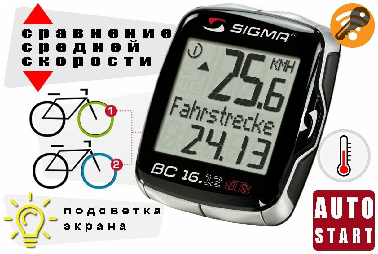 Type: cycling computer, cycling computer type: wireless, functions: automatic start/stop, low battery indicator, maximum speed, odometer, single trip distance, stopwatch, saving data when replacing batteries