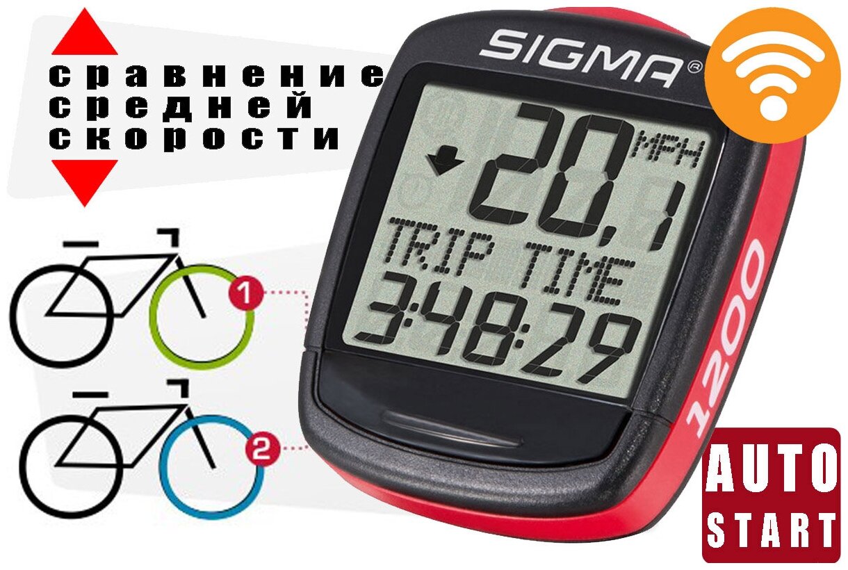 Type: cycling computer, cycling computer type: wireless, functions: automatic start/stop, training time, maximum speed, total riding time, odometer, single trip distance, stopwatch, current comparison
