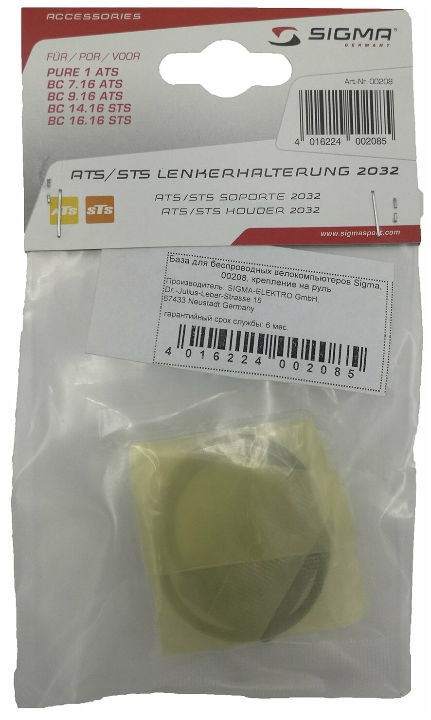 Bicycle base for SIGMA wireless bike computers, handlebar mount, 208
