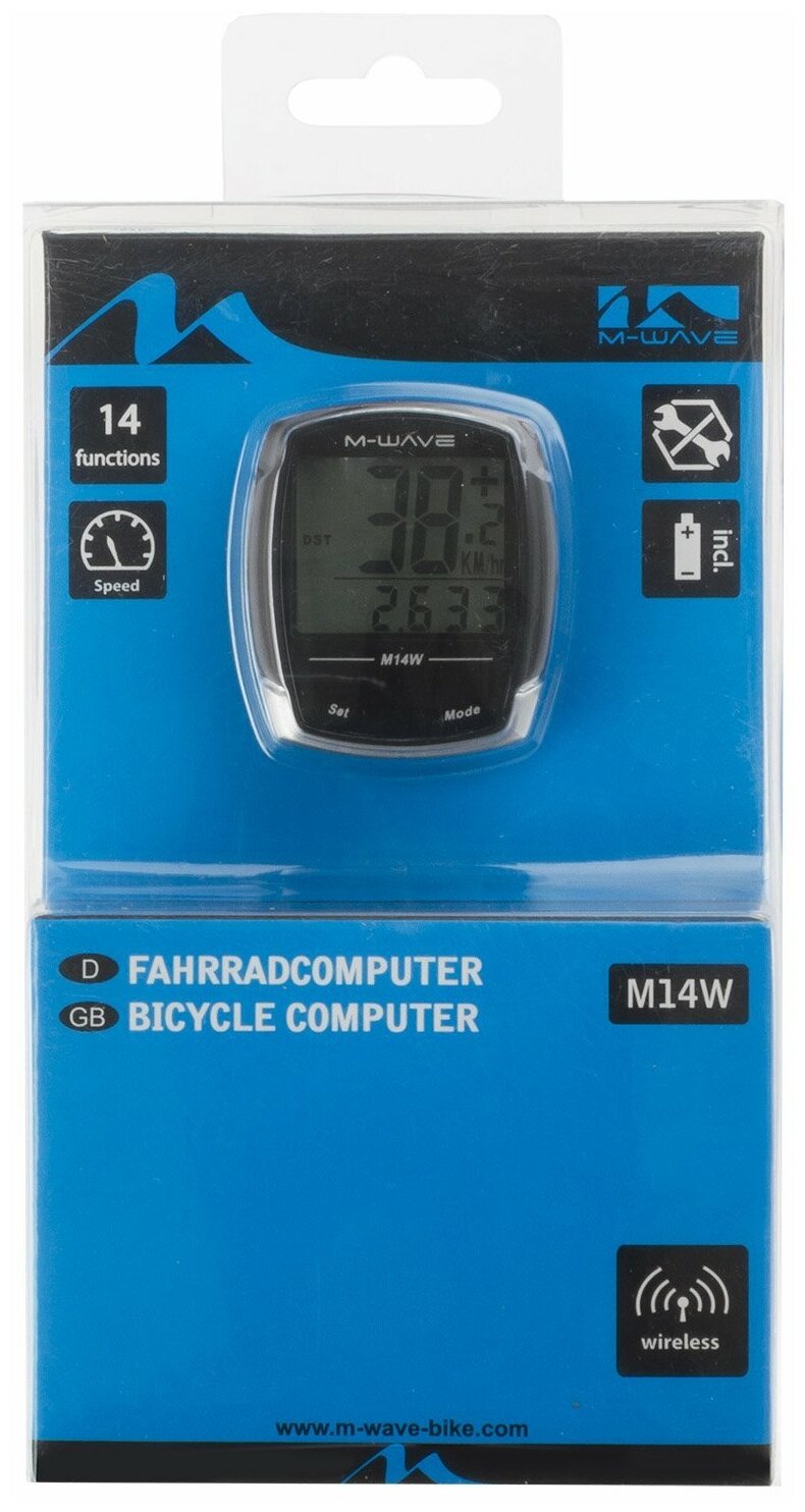 Type: cycling computer, cycling computer type: wireless, mount: handlebar, functions: automatic start/stop, training time, maximum speed, odometer, average speed, current speed, installation without tools