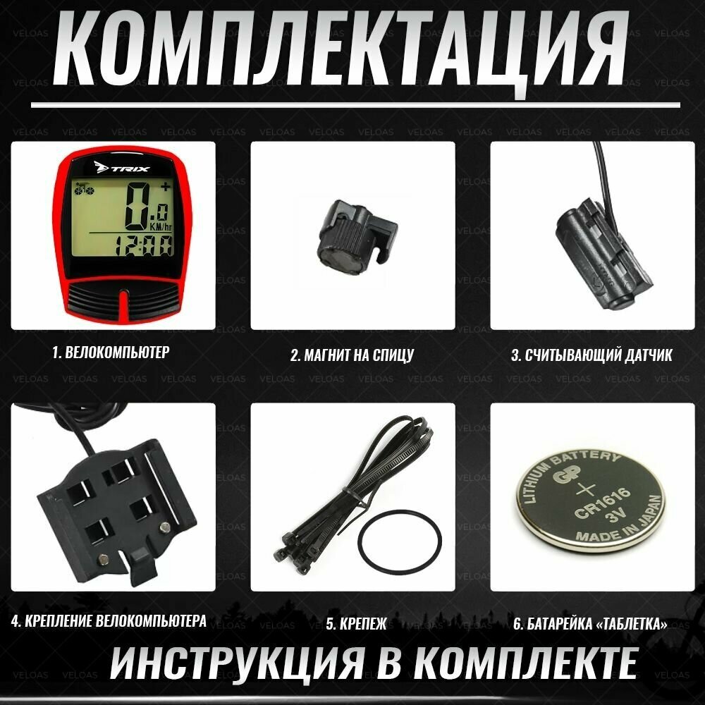 Description: Type: cycling computer, cycling computer type: wired, functions: maximum speed, odometer, average speed, current speed, Time, Trip distance, Maximum cadence, Total travel time, Avg