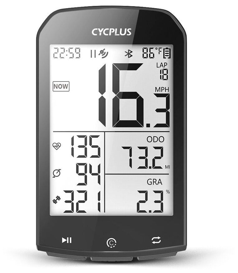 Wireless GPS bike computer Cycplus M1, 16 functions compatible with sensors: speed, cadence, power, heart rate