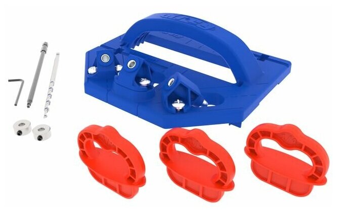 Type: jig for fixing, purpose: for floor coverings, drilling: at an angle, included: inserts for setting the gap, drilling depth limiter, step drill, hex key, 3 guides