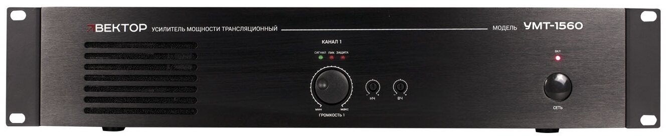 Indication of amplifier operating modes, output signal level adjustment, bass/HF adjustment, multi-stage protection, power supply 220-230 V/50-60 Hz