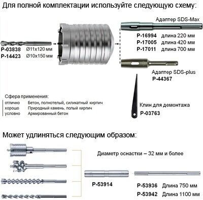Type: crown, cutting part coating material: carbide, processing material: concrete, stone, brick, type of drilling: dry, impact bit