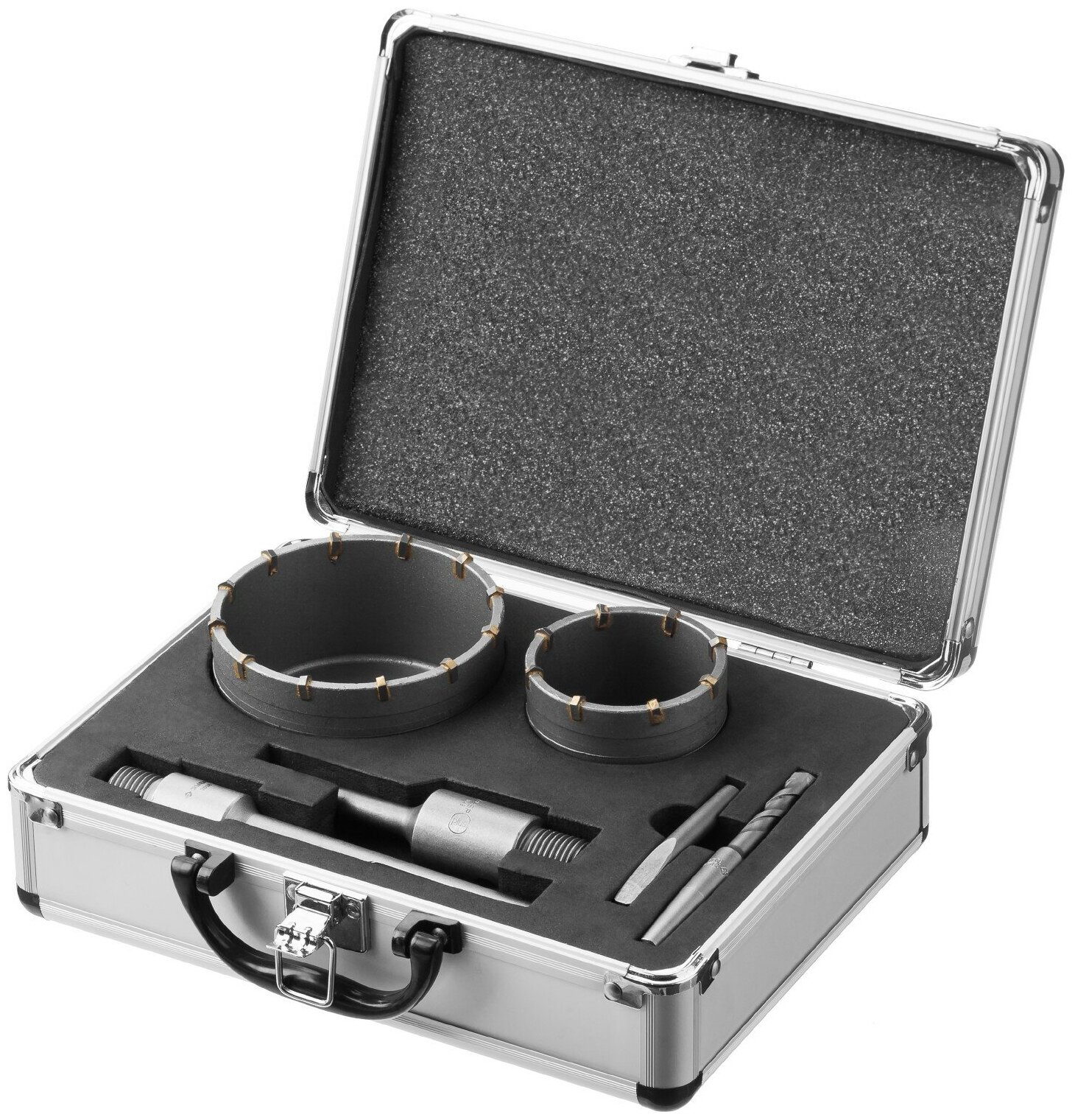 2 crowns included: 68 mm, 100 mm; 2 holders: SDS-plus 120 mm, SDS-max 160 mm; centering drill; wedge 75 mm