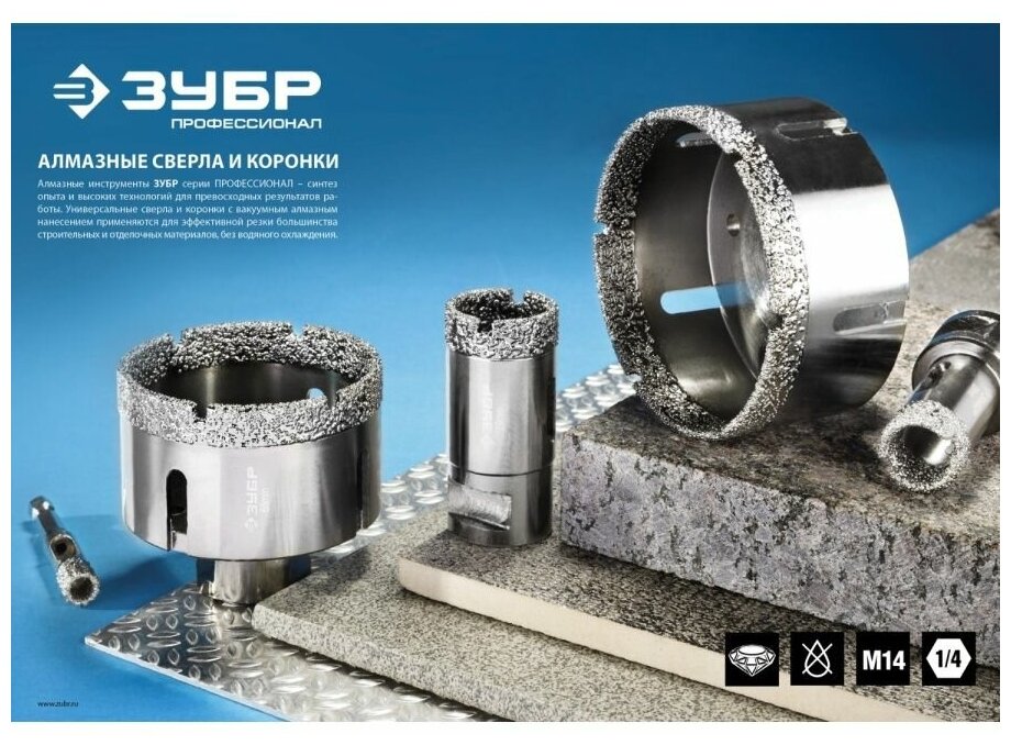 ZUBR Ø 54 mm, VVS, M14, diamond, universal crown 29865-54 Professional