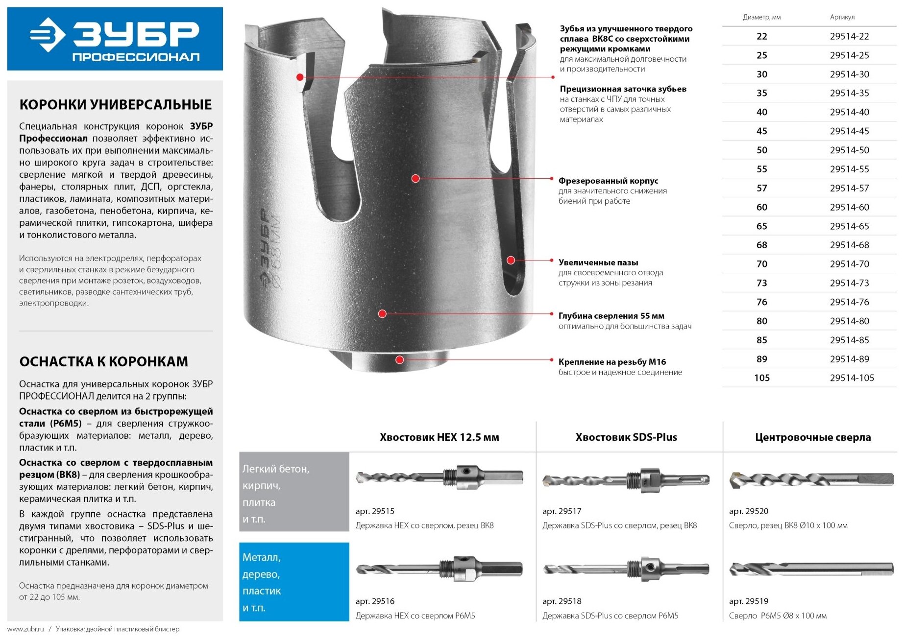 Type: crown, cutting part coating material: carbide, processing material: PVC, concrete, plasterboard, wood, ceramics, brick, drilling type: dry