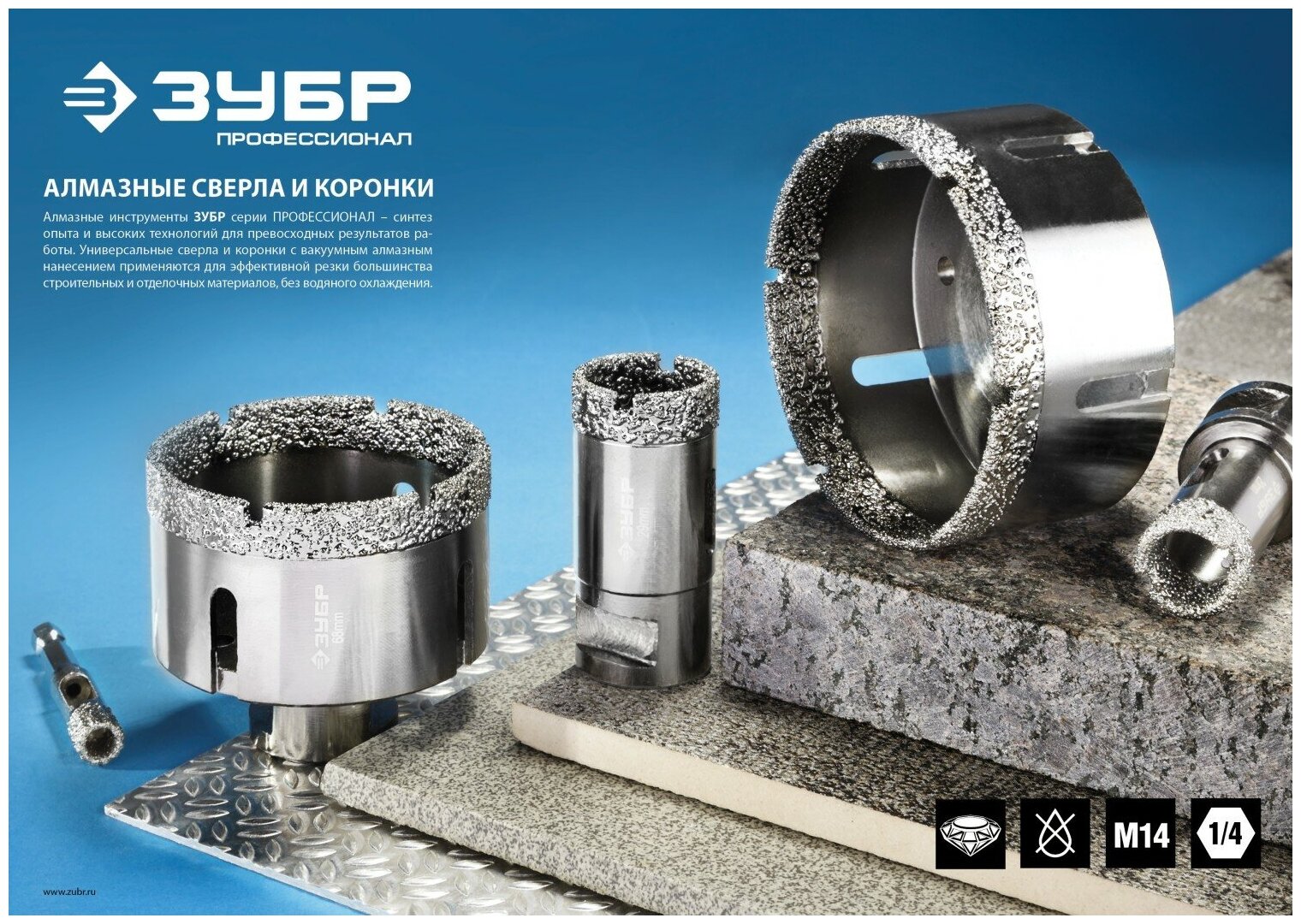 ZUBR diamond crown for porcelain stoneware, vacuum sintering of diamonds, d=20 mm, fit M14, Professional, 29865-2029865-20