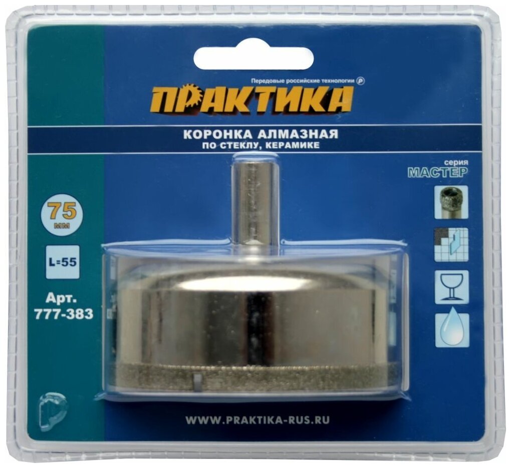 Type: crown, cutting part coating material: diamond, processing material: ceramics, porcelain stoneware, glass, drilling type: wet