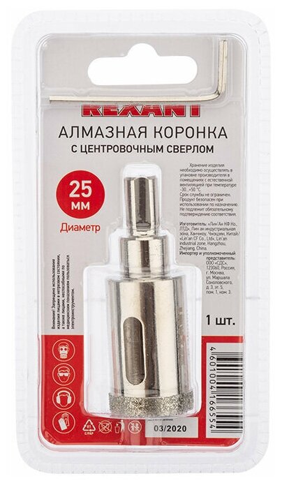Diamond core bit 25 mm for REXANT porcelain stoneware with center drill