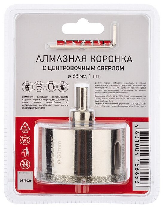 REXANT porcelain stoneware diamond core drill 68 mm with center drill