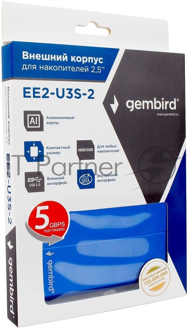 Type: case, form factor: 2.5, drive connection interface: SATA, connection interfaces: USB 3.0 Type A, number of bays: 1 pc., power supply: USB, maximum supported capacity: 2000 GB