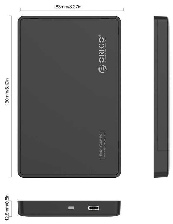 Type: case, form factor: 2.5", drive connection interface: SATA, connection interfaces: USB 3.0 Type-C, number of compartments: 1 pc., power supply: USB, maximum supported capacity: 2000 GB