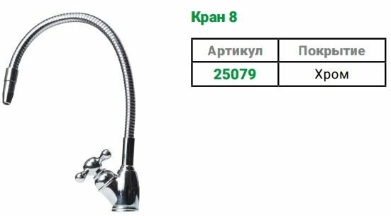 Delivery set: tap for clean water; decorative cup; rubber gasket large on top, small on bottom 2 pcs.; plastic support washer; fastening nut with washer on top; collet nut; piston meta