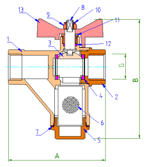 Ball. with built-in direct filter, butterfly handle 1/2 in.-in. VALTEC