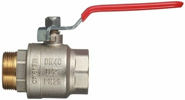 Description: Type: straight, design: full bore, purpose: for water, control: handle-lever, nominal pressure: PN 40, features: Leakage protection, minimum temperature: -20 °C, maximum temperature: 150 °C