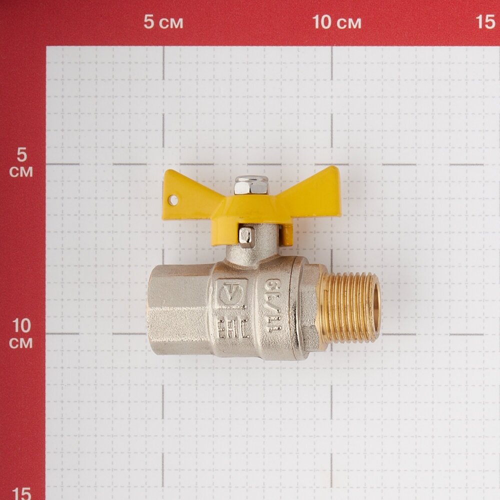 Type: straight, design: full bore, purpose: for gas, body material: brass, control: butterfly handle, nominal pressure: PN 10, features: filter, maximum temperature: 150 °C