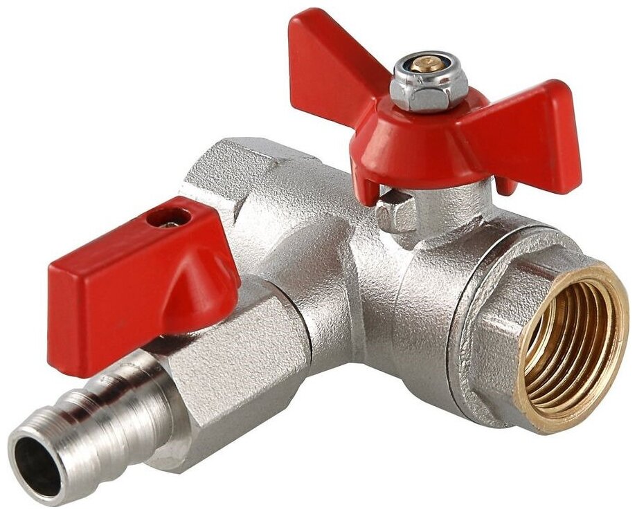 Type: angular, body material: brass, control: butterfly handle, features: drain valve