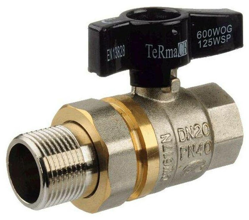Type: straight, purpose: for water, body material: brass, control: butterfly handle, features: union nut, minimum temperature: -20 °C, maximum temperature: 150 °C