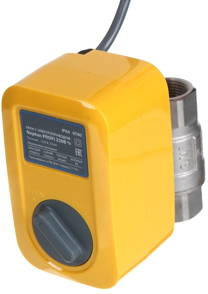 Description: Type: straight, design: full bore, purpose: for water, control: electric drive, nominal pressure: PN 40, features: Leakage protection, Shut-off taps, maximum temperature: 120 °C