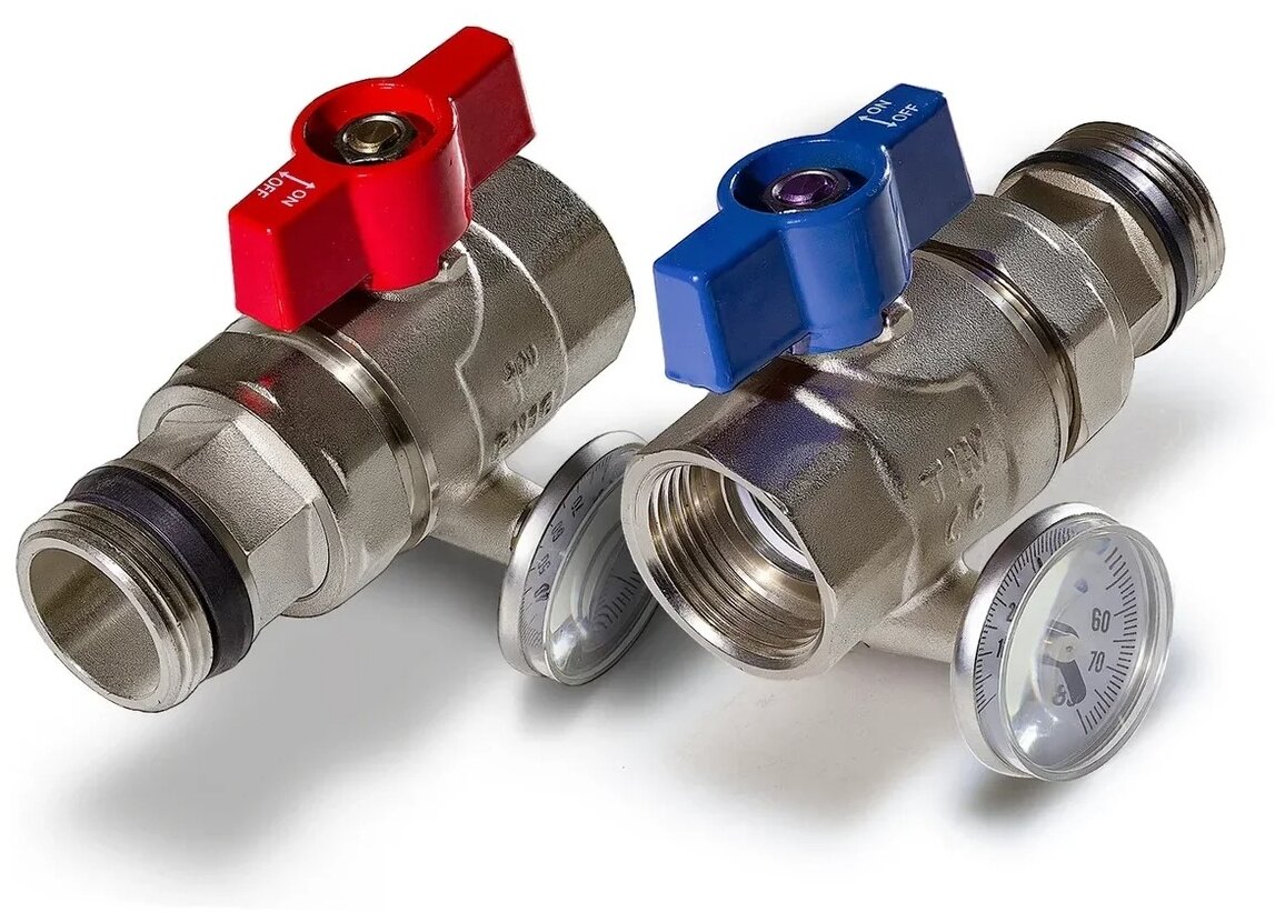 Type: straight, design: full bore, purpose: for water, control: butterfly handle, nominal pressure: PN 16, features: union nut, with thermometer, maximum temperature: 80 °C