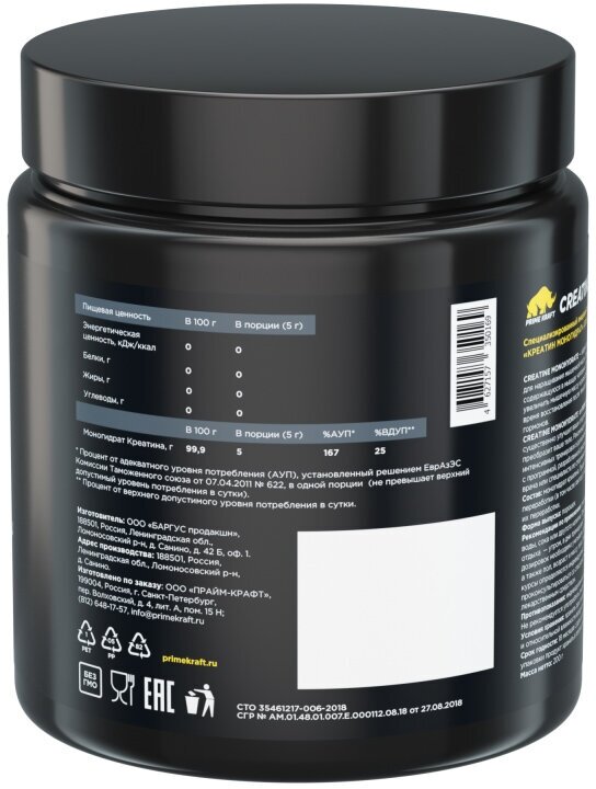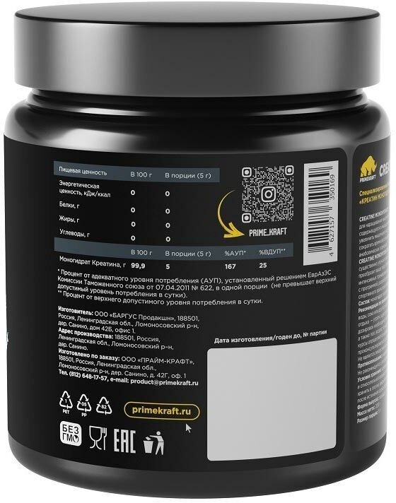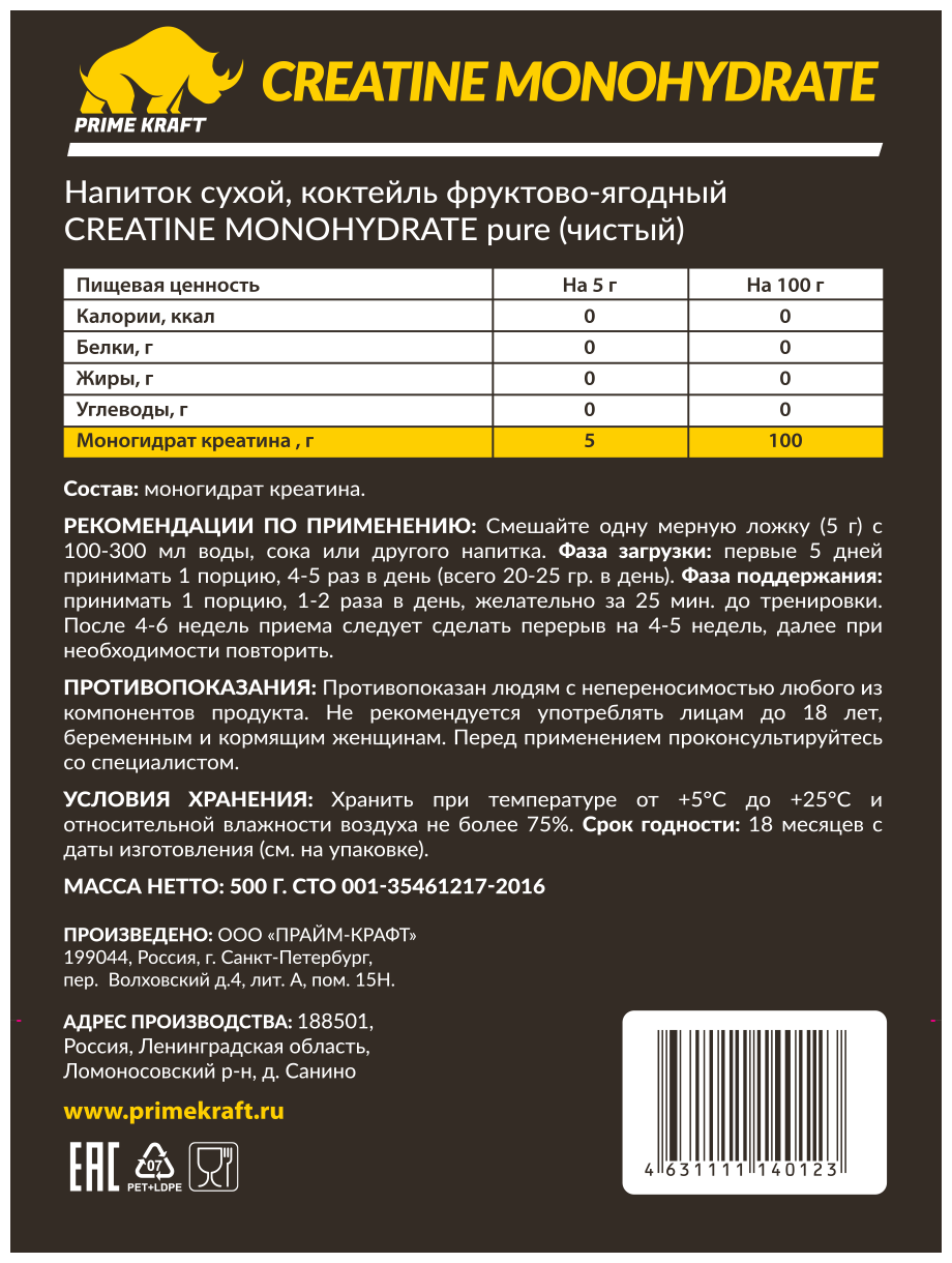 Creatine Prime Kraft Creatine Monohydrate 500g
