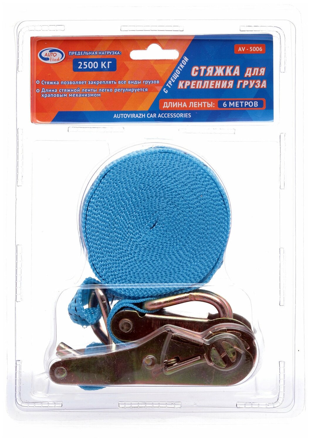 Lashing strap with ratchet AUTOVIRAZH AV-5006 2.5 t