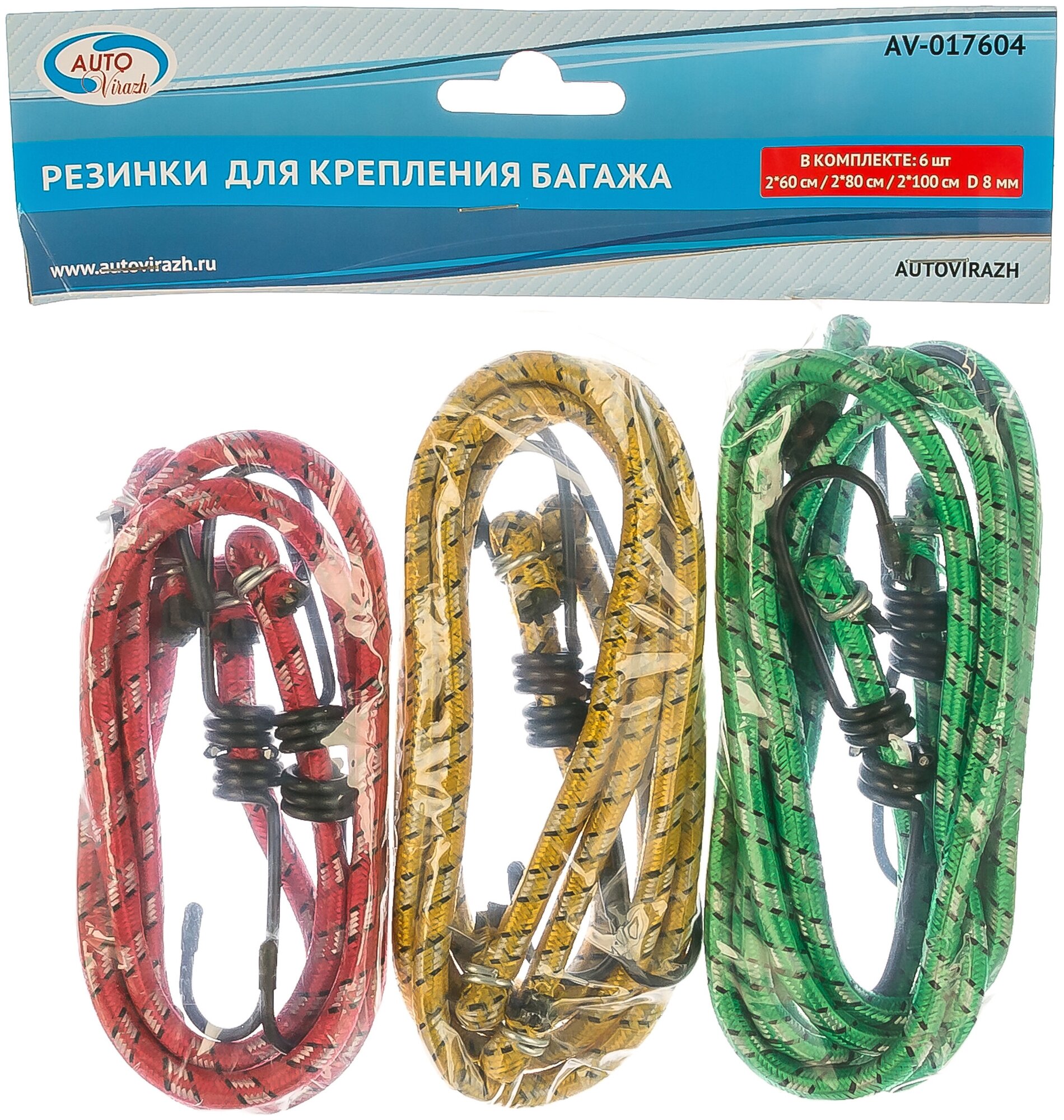 Lashing cord with hooks AUTOVIRAZH AV-017604 set of 6 pcs.