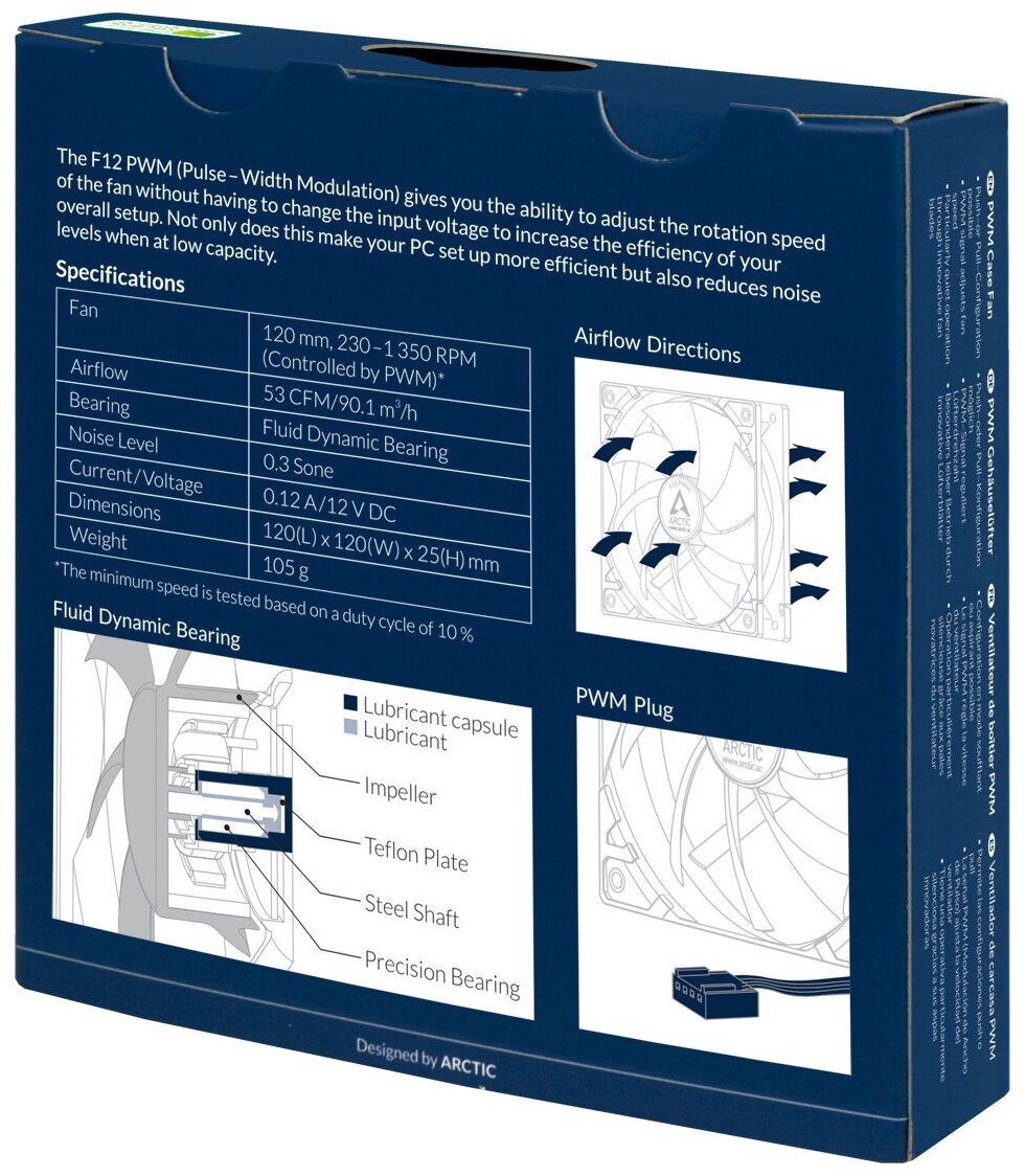 Type: fan, purpose: for case, fan diameter: 120, maximum noise level: 22.50 dB, connector type: 4-pin PWM, bearing type: hydrodynamic, maximum rotation speed: 1350 rpm