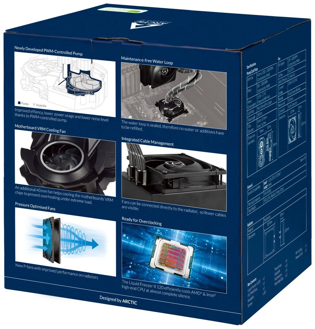 Type: water cooling system, purpose: for processor, processor socket: AM4, AM5, LGA 1150, LGA 1151, LGA 1151-v2, LGA 1155, LGA 1156, LGA 1200, LGA 1700, LGA 2011-3 Square ILM, LGA 2066 , fan diameter: 120, number of fans: 1, connector type: 4-pin PWM, t