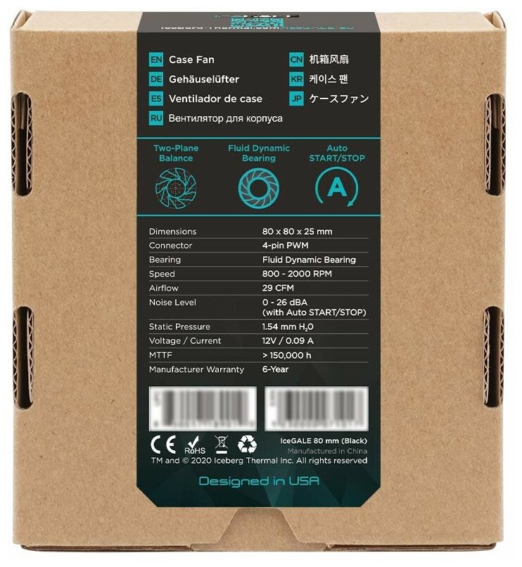 Type: fan, purpose: for case, fan diameter: 80, maximum noise level: 26 dB, connector type: 4-pin PWM, bearing type: hydrodynamic, maximum rotation speed: 2000 rpm
