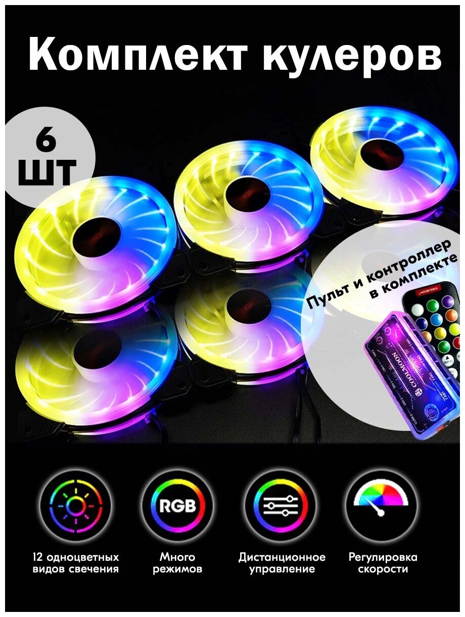 Type: fan kit, purpose: for case, fan diameter: 120, number of fans: 6, maximum noise level: 23 dB, connector type: 4-pin Molex, bearing type: hydrodynamic, maximum speed in
