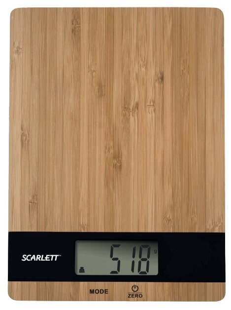 Type: electronic, design: platform, weighing limit: 5 kg, measurement accuracy: 1 g, additional functions: liquid volume measurement, tare compensation, indication: battery charge, overload