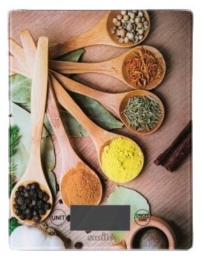 Type: electronic, design: platform, weighing limit: 8 kg, measurement accuracy: 1 g, additional functions: automatic shutdown, liquid volume measurement, tare compensation, indication: battery charge, switch
