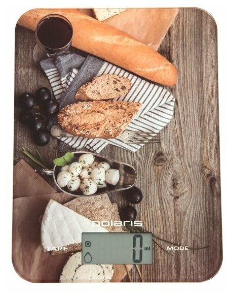Type: electronic, design: platform, weighing limit: 10 kg, measurement accuracy: 1 g, additional functions: automatic shutdown, liquid volume measurement, tare compensation, indication: battery charge, restart
