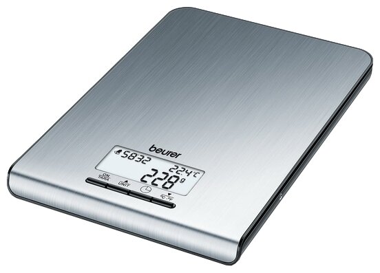 Type: electronic, design: platform, weighing limit: 3 kg, measurement accuracy: 1 g, additional functions: automatic shutdown, timer, tare compensation, clock