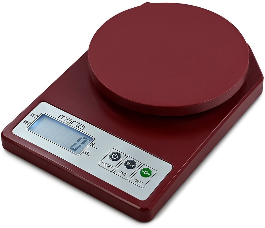 Type: electronic, design: platform, weighing limit: 5 kg, measurement accuracy: 1 g, additional functions: automatic shutdown, tare compensation, overload indicator, indication: battery charge, overload