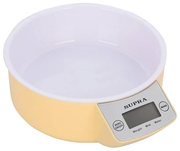 Type: electronic, design: bowl, weighing limit: 5 kg, measurement accuracy: 1 g, additional functions: automatic shutdown, liquid volume measurement, tare compensation, design features: removable plate