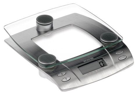 Type: electronic, design: platform, weighing limit: 8 kg, measurement accuracy: 1 g, additional functions: automatic shutdown, liquid volume measurement, tare compensation, indication: battery charge, switch